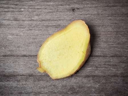 Close up Fresh ginger on wood texture.