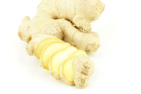 Fresh ginger root Zingiber officinale on a white background