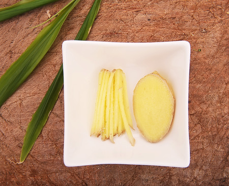 Ginger on white wooden background