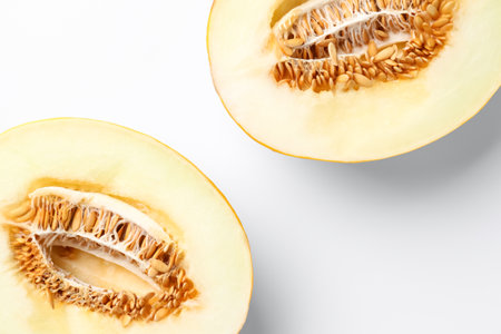 Freshly Halved Cantaloupe Melon Isolated on Vibrant Yellow, Summer Fruit, Ripe and Juicy
