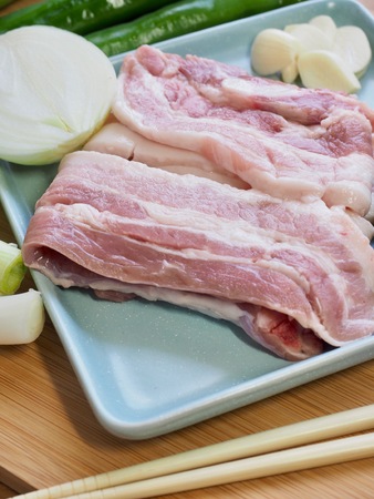 Korean barbecue Saeng Samgyeopsal, raw pork belly