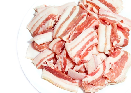 fresh pork sliced on white background