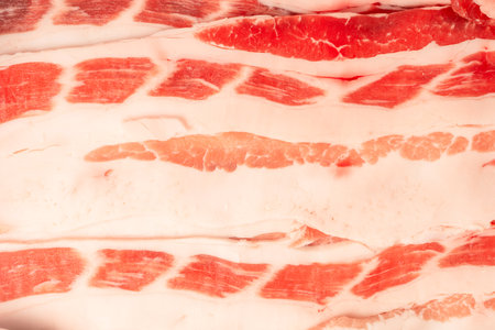 Fresh sliced collar pork raw closeup. Raw Bacon Slices