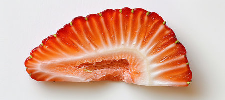 Vibrant and fresh strawberry slices showcase their rich red color and textures, perfect for culinary inspiration. Ideal for healthy eating, summer recipes, and food photography, this image captures the essence of freshness and nutrition, making it a delightful addition to any project.