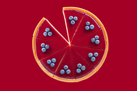 Slicing lemon pie tart. Lemon pie flat lay on a blue background. Single slice of lemon pie. Sliced fruit cake.