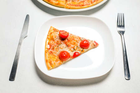pizza slice on a plate on white background. traditional italian cuisine restaurant. pizzeria menu