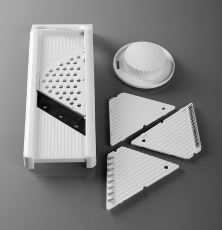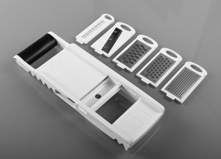 Close up of small slicer used to slice vegetables while making salad,Isolated on white.