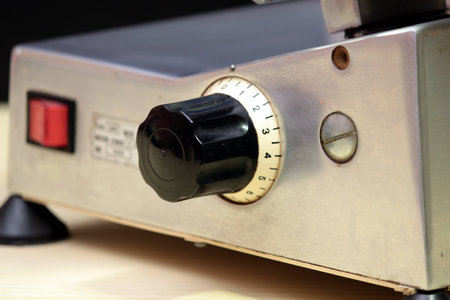 vintage old ham prosciutto red slicer in an italian restaurant