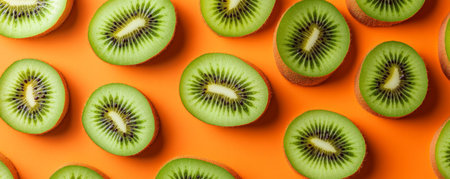 Kiwi slices on an orange background, vibrant and fresh. Healthy eating and fruit concept