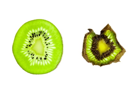 Senescence of a kiwi fruit slice (chinese gooseberry), isolated on a white background