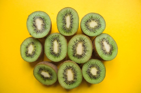 Fresh kiwi fruit on yellow background. Healthy food concept.