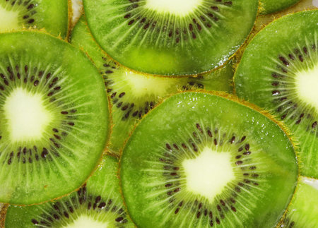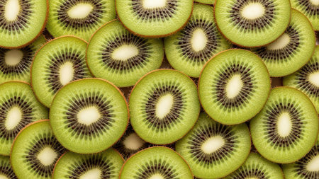 Fresh kiwi fruit slices background for healthy living and nutrition concepts.