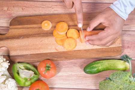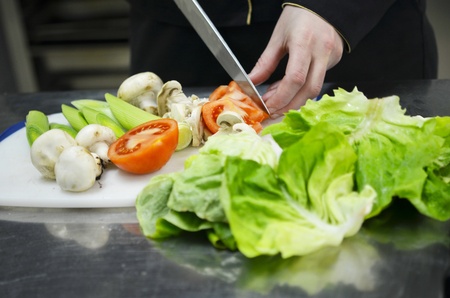 Chef cutting fresh vegetables for cooking
