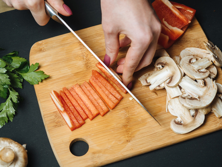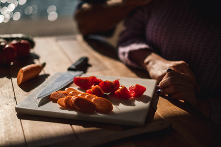 Cut fresh vegetables on the cutting board