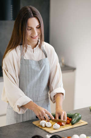 housewife on the kitchen cutting vegetables diet