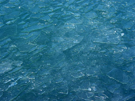 Crashed ice on the river or lake surface. Abstract background. End of winter, spring is coming concept.