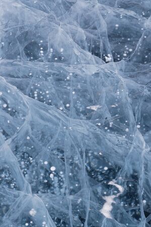 Ice of Lake Baikal, the deepest and largest freshwater lake by volume in the world, located in southern Siberia, Russia
