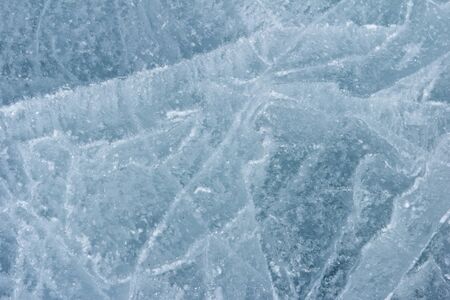 Texture of ice of Baikal lake in Siberia. blue lake ice.