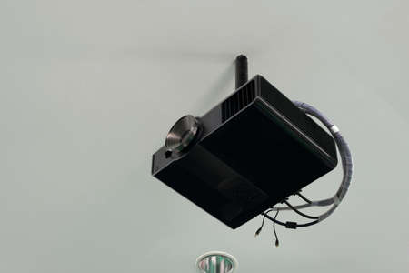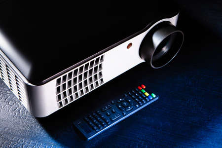 Video projector with remote control. Multimedia projector. Video presentation. Projection of images. Equipment for conference rooms. Projection technology