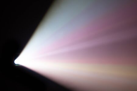 beautiful pastel color wide lens projector light beam for movie and cinema at night . smoke texture spotlight . screening for multimedia . black background .