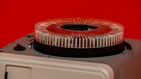 San Francisco, USA - August 2019: Old 35mm slide projector carousel in San Francisco Museum of Modern Arts