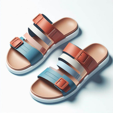 Top view of stylish summer women's sandals isolated on a white background. Comfortable summer women's shoes.
