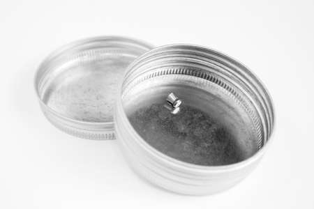 closeup opened can on white background