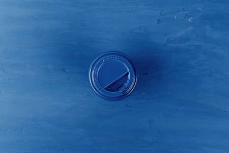 Top view of a takeaway coffee cup on classic blue background