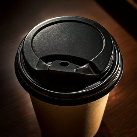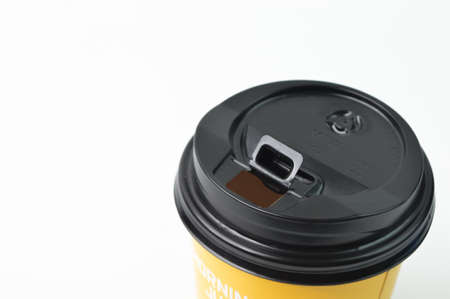 Close up view of black coffee cup lid