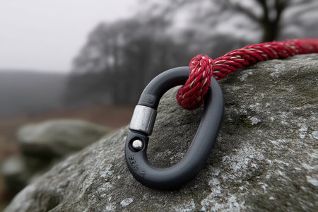 Climbing sports image of a carabiner on a rope