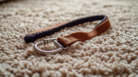 A red leash with snap hook over black background