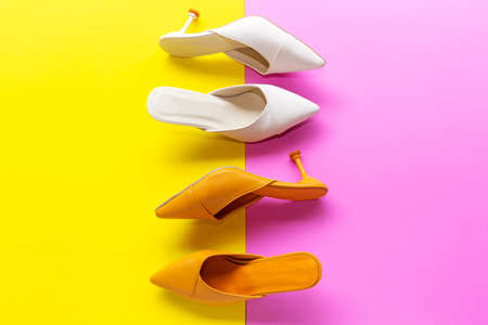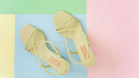 Fashion shoes heels on pink and yellow pastel color