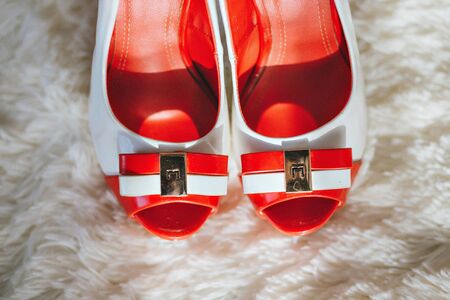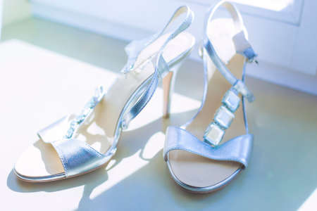beautiful wedding shoes of the bride.