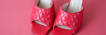 Women's sandals on a pink background close up