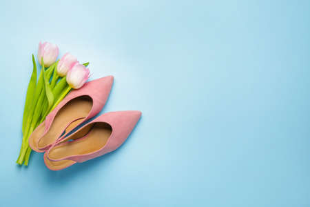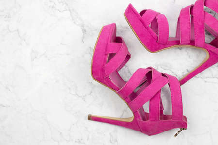 evening female shoes on a background with a place for text, top view. Preparing for the party. holiday shopping