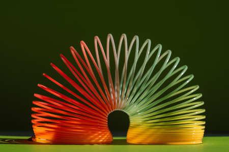 Retro slinky toys on green background
