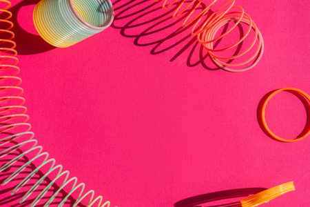 Bright slinky toys on pink paper