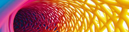 Vibrant Swirling Geometry in Modern Polished Style with Flowing Shapes and Neon Color Palette