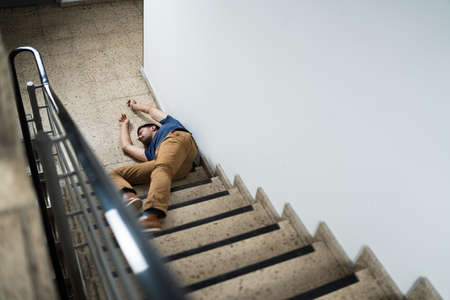 Unconscious Man Lying On Staircase After Slip And Fall Accident