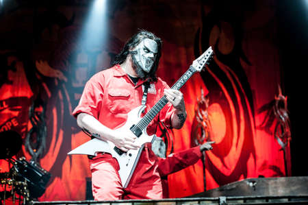 MOSCOW, RUSSIA - JUNE 29, 2011: American heavy-metal band Slipknot performing at Olimpiyski stadium, Moscow during Memorial World Tour