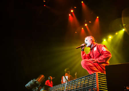 American heavy-metal band Slipknot performing at Olimpiyski stadium, Moscow during Memorial World Tour