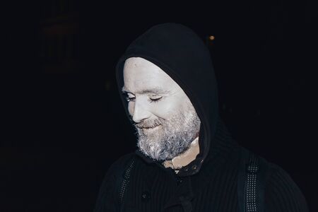 MINSK, BELARUS.September 30, 2017 Street theater, a man in the form of a statue on the street