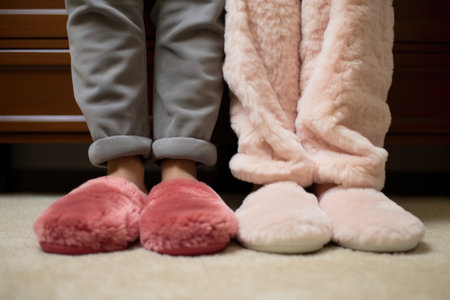 his and hers matching slippers next to each other, created with generative ai