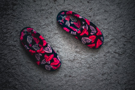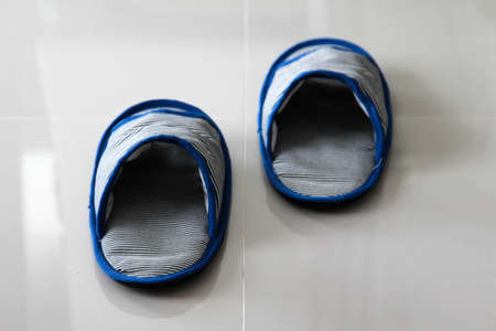 Casual shoes or Slippers for home use on the grey floor tiles.