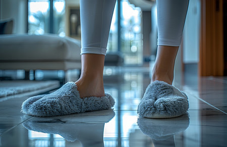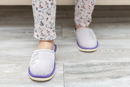 Young woman in soft slippers at home