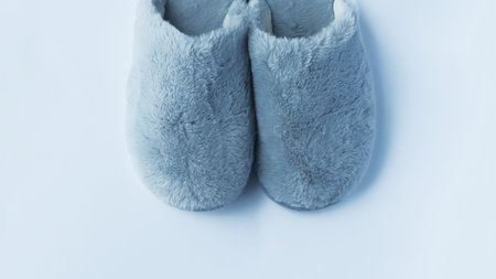 Gray soft home slippers on a gray background.