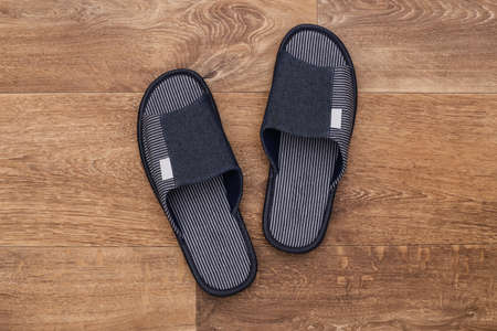Slippers on the brown wooden floor
