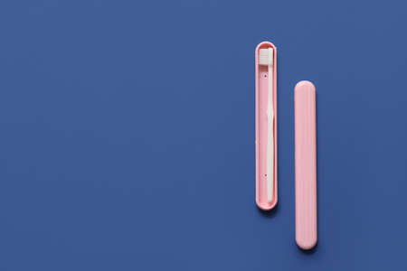 Two tongue brushes. Dental and oral care. Flat lay, top view.