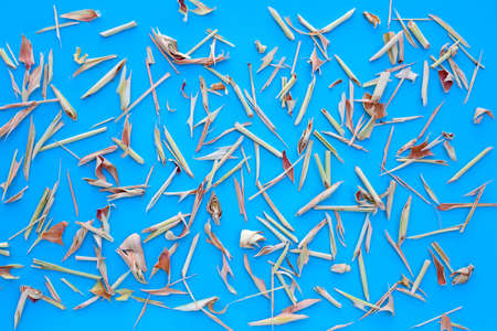 Organic dried lemongrass on blue background.