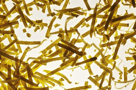 close up detail image of sheredded yellow paper